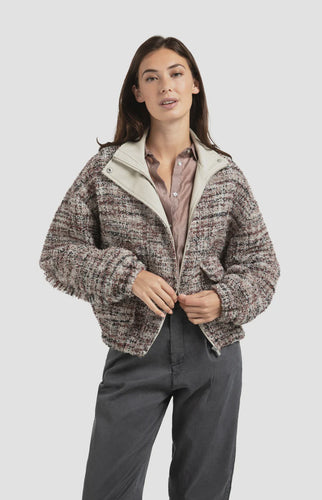 Yaya - Bouclé jacket with fringes and stand-up collar