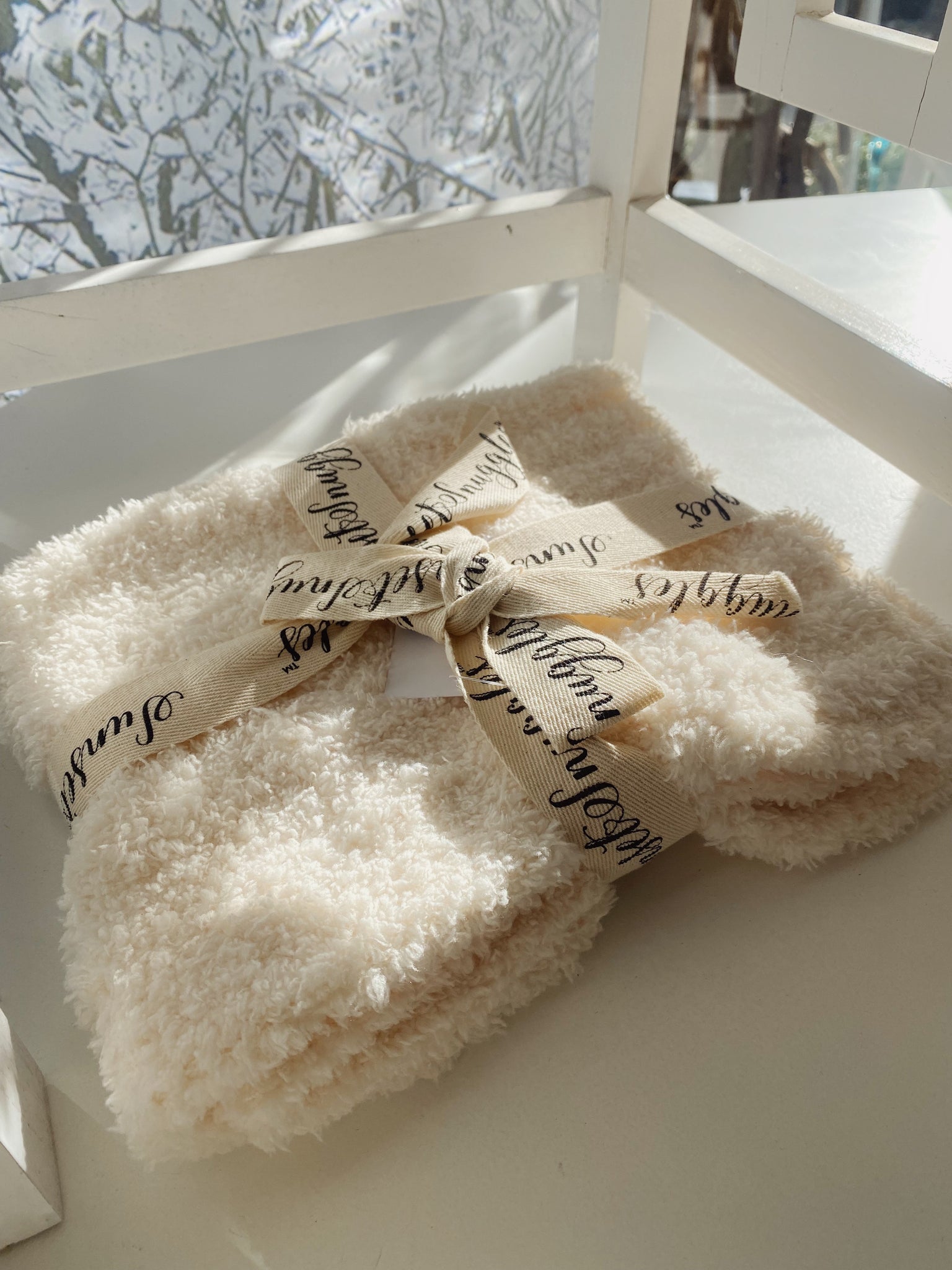Knit from micro-polyester feather yarn. These blankets are double layered which provides thickness and stretch!